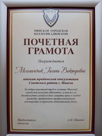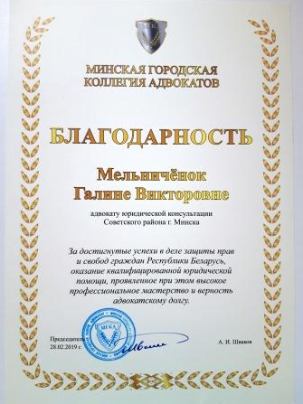 Я являюсь членом Минской городской коллегии адвокатов, более 20 лет успешно осуществляю адвокатскую практику по представлению интересов физических и юридических лиц.